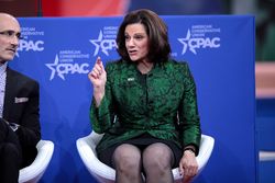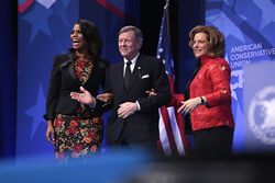 نائبة مستشار الأمن القومي مكفارلاند تظهر في CPAC في فبراير 2017, alongside her husband and Omarosa Manigault