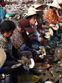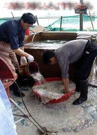 بعد انقضاء هذه المدة تستخرج الأصداف من البحر، لترسل إلى مصنع اللؤلؤ الذي يقوم بدوره بفرزه بحسب بريقه وشكله ونوعه ولونه.