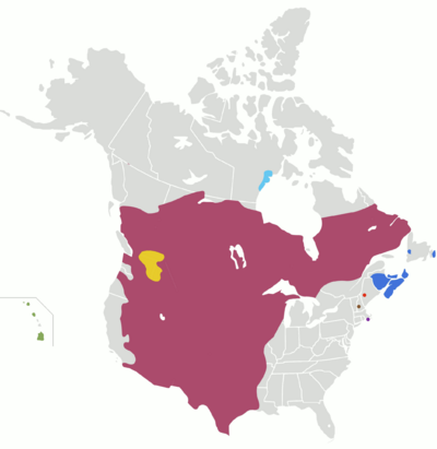 Thirty-two states, in some cases as part of what has been called the English-only movement, have adopted legislation granting official status to English.[22][23][24] Typically only "English" is specified, not a particular variety like American English. (From 1923 to 1969, the state of Illinois recognized its official language as "American".)[25][26] Hawaiian, although having few native speakers, is an official language along with English of the state of Hawaii. Alaska has made some 20 native languages official, along with English;[27][28] for example, Alaska provides voting information in Iñupiaq, Central Yup'ik, Gwich'in, Siberian Yupik, and Koyukon among others.[29] On July 1, 2019, a law went into effect making Lakota, Dakota, and Nakota the official indigenous languages of South Dakota.[30] French is a de facto, but unofficial, language in Maine and Louisiana, while New Mexico law grants Spanish a special status. The government of Louisiana offers services and most documents in both English and French, and New Mexico does so in English and Spanish.