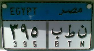 - ^ لوحات السيارات الجديدة تثير السخرية في مصر.. والتهديد باللجوء للقضاء. الشرق الأوسط، بتاريخ 4 أغسطس 2009. تاريخ الوصول: 2 يناير 2013.