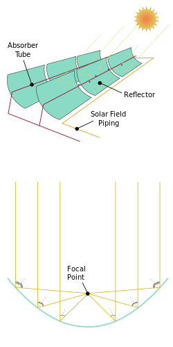 مـُجمـِّع حراري شمسي solar thermal collector هو مجمع شمسي مصنوع خصيصاً لجمع الحرارة: أي، لامتصاص ضوء الشمس للإمداد بالحرارة. وبالرغم من أن المصطلح قد يستخدم للاشارة إلى ألواح تسخين الماء الشمسية البسيطة، فعادة ما تستخدم للاشارة إلى تركيبات أكثر تعقيداً. There are various types of thermal collectors, such as solar parabolic, solar trough and solar towers. These type of collectors are generally used in solar power plants where solar heat is used to generate electricity by heating water to produce steam which drives a turbine connected to an مولد كهربائي.