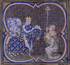لويس السابع يستقبل القساوسة، من مخطوط من العصور الوسطى المتأخرة.