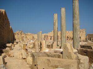 Roman ruins, like those of Leptis Magna and Sabratha in present-day Libya, attest to the vitality of the region, where populous cities and even smaller towns enjoyed the amenities of urban life – forum, markets, public entertainments, and baths – found in every corner of the Roman Empire.[13]