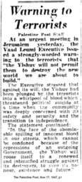 - Egan, Charles E. "British Put Palestine Up to U.N." The New York Times. pp. 1, 5.