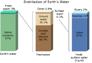 نقص المياه. لاتحصل مناطق عديدة من العالم على أمطار كافية، وتعاني نقصًا ثابتًا ودائمًا في المياه. كما أن مناطق أخرى عديدة تتلقى طبيعيًّا كميات كافية من الأمطار، إلا أنها يمكن أن تتعرض فجأة إلى سنوات من الجفاف. ويكون المناخ متقلبًا خصوصًا في المناطق التي تسقط عليها أمطار خفيفة. وتتعرض مثل هذه المناطق لسلسلة من سنوات الجفاف المدمرة.