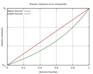 The lower bound is dictated by the isostress condition, in which the fibres and matrix are oriented perpendicularly to the loading direction: