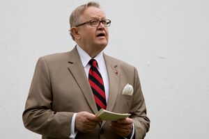 In Finnish politics, Ahtisaari long stressed how important it is for Finland to join NATO.[34] Ahtisaari argued that Finland should be a full member of NATO and the EU in order "to shrug off once and for all the burden of Finlandization".[35] He believed politicians should file application and make Finland a member. He said that the way Finnish politicians avoided expressing their opinion was disturbing.[36] He also noted that the so-called "NATO option" (acquiring membership if Finland were to be threatened) was an illusion, making an analogy to trying to obtain fire insurance when the fire has already started.[37] Finland joined NATO in 2023.[38]
