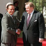 During Ahtisaari's term as president, Boris Yeltsin and Bill Clinton met in Helsinki.[32] He also negotiated alongside Viktor Chernomyrdin with Slobodan Milošević to end the fighting in the Yugoslav province of Kosovo in 1999.[33]