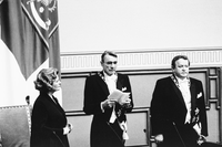 After the primaries, Ahtisaari returned to his work in Geneva, and did not start his presidential campaign until the end of October.[6] Ahtisaari narrowly won over his second round opponent, Elisabeth Rehn of the Swedish People's Party.[12] During the campaign, there were rumours spread by some political opponents of Ahtisaari that he had a drinking problem or that he had knowingly accepted a double salary from the Finnish Foreign Ministry and from the United Nations while trying to negotiate an end to the Bosnian War. Ahtisaari denied both allegations and no firm proof of them has emerged. During the three-week campaign between the two rounds of presidential elections, Ahtisaari was praised by his supporters for being more compassionate towards the many unemployed Finns than Rehn, who as Defence Minister had to officially support the Aho government's strict economic policies. A minor controversy arose during a town hall-style presidential debate in Lappeenranta, southeastern Finland, when an apparently born-again Christian woman in the audience asked Rehn what her relationship with Jesus was. Rehn replied that she had personally no proof that Jesus had been a historical person. Ahtisaari ducked a precise answer by stating that he trusted the Lutheran confession even on this issue.[22][23][24] He was sworn in on 1 March 1994.[12]