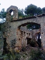 The Cardó Monastery, also known as Sant Hilari de Cardó or Desert de Cardó, was a large monastery located in the Cardó Valley (Vall de Cardó), a deep valley in these mountains. It was closed down due to the Ecclesiastical Confiscations of Mendizábal in 1835 during Isabella II of Spain's rule. The Desamortización or secularization of the place brought monastic life in the monastery, and the many hermitages surrounding it, to an end. The monastery can be reached by a paved road from Rasquera.