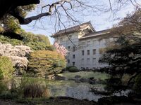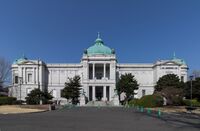 It was replaced by Jin Watanabe's reinforced-concrete structure in the Imperial Crown Style,[23] with a neoclassical base and Japanese roof. It was completed from 1932 to 1938[17] at a cost of 7 million yen. It opened on 10 November 1938 with a ceremony attended by Emperor Hirohito.[19] The building was designated an Important Cultural Property of Japan in 2001.[5]