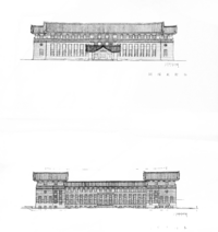 Jin Watanabe's 1937 plans for the second Honkan, front and side elevations