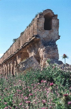 The cavities and holes in the aqueduct are used as nesting and roosting sites by the lesser kestrel Falco naumanni (30 pairs), but also by the Lanner falcon Falco biarmicus and the common kestrel Falco tinnunculus as well as the European roller Coracias garrulus, rock sparrows Petronia petronia, spotless starlings Sturnus unicolor and common ravens Corvus corax. The site is of particular significance for the lesser krestel as it regularly holds significant numbers the species, (which is a species of global conservation concern).[1]