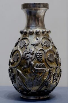 Sasanian silver-gilt plate with scene of musicians playing. Seventh century. |