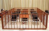 | جلسة محاكمة صدام حسين برئاسة القاضي رزكار أمين. |