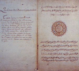 معاهدة تجارية وقعها محمد بن عبد الله مع فرنسا في 1767.