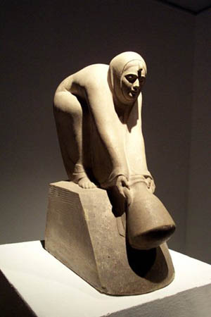 وينحت مختار تمثال على شاطئ النيل للفلاحة المصرية رامزاً للشعب بأسره في خطوط وحدة حادة وتناسق .. حققت التوازن المعمارى للتمثال ، وتتجلى حاسة مختار في توفيقة بين اختيار الشكل الفنى الملائم لكل موضوع يتناوله بالمعالجة ،