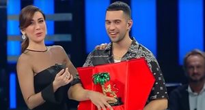 أليساندرو محمود يتسلم جائزة مهرجان سان ريمو الغنائي في إيطاليا، فبراير 2019.