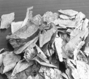 بعض الرقوق القرآنية على الهيئة التي وجدت فيها عند اكتشافها.