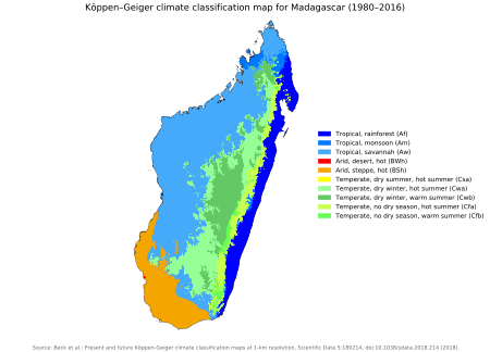 مدغشقر (إنگليزية: Madagascar؛ []ˌmædəˈɡæskər,_ʔkɑɹ[]؛ ملاگاسي: Madagasikara)، رسمياً جمهورية مدغشقر (ملاگاسي: Repoblikan'i Madagasikara، {{IPA-mg|republiˈkʲan madaɡasˈkʲarə̥})؛ فرنسية: République de Madagascar)، كانت تُعرف باسم جمهورية ملگاسي، هي بلد جزيرة في المحيط الهندي، تقع على بعد 400 كم تقريباً من ساحل شرق أفريقيا عبر قناة موزمبيق. بمساحة 592.800 كم²، تعتبر مدغشقر ثاني أكبر بلد-جزيرة في العالم، بعد إندونيسيا.[14] تتكون البلد من جزيرة مدغشقر ( رابع أكبر جزيرة في العالم) والعديد من الجزر المحيطة الأصغر. بعد تفكك ما قبل التاريخ لـ القارة العظمي گوندوانا، انفصلت مدغشقر عن شبه القارة الهندية منذ حوالي 88 مليون سنة، مما سمح للنباتات والحيوانات المحلية بالتطور في عزلة نسبية، وبالتالي، فإن مدغشقر بؤرة التنوع الحيوي؛ أكثر من 90٪ من حياتها البرية لا توجد في أي مكان آخر على وجه الأرض. تتعرض النظم الإيكولوجية المتنوعة والحياة البرية الفريدة للجزيرة للتهديد من خلال التعدي على السكان الذين يتزايد عددهم بسرعة والتهديدات البيئية الأخرى.