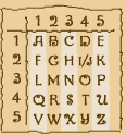 قام المؤرخ اليوناني الشهير پوليبيوس بإختراع أداة لنقل الرسائل والتي أتاحت للرسائل أن تـُنقل بسهولة باستخدام نظام رقمي، وذلك بتكسير النص بحيث يتم تمثيله بعدد من الرموز أقل من عدد حروف النص الأصلي. إلى هذه الفكرة استـُعمِلت في تكويد تعموي وإملائي steganography. وقد عرفت تلك الأداة باسم "مربع پوليبيوس Polybius square"، حيث حروف الأبجدية تصف من اليسار إلى اليمين، في صفوف من أعلى إلى أسفل في مربع 5 * 5، (وعند استخدامها مع الأبجدية ذات الستة وعشرين حرفاً الحديثة، فإن الحروف "I" و "J" يتم ضمهم سوية). خمسة أرقام بعد ذلك صـُفوا على طول الحد الأعلى للمربع، وخمسة أرقام صـُفوا رأسياً على الحد الأيسر للمربع. عادة ما تكون تلك الأرقام من 1 إلى 5. وبالإشارة إلى كل حرف باحداثياته في المربع، أمكنه تعمية أي رسالة.