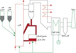 تنفذ العمليات الإتناجية الضرورية لاستمرار عمل المرجل على نحو متواصل وآلي وفقاً للشروط الفنية. ويبين الشكل (1) مكونات المخطط الإنتاجي في حال استخدام الوقود العضوي الصلب، ويحتوي المخطط على الوحدات الإنتاجية الآتية: