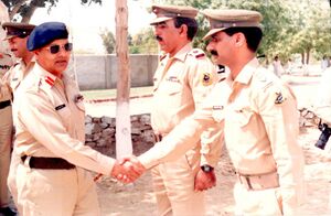 Beg's tenure witnessed Benazir Bhutto being elected Prime Minister in November 1988, and the restoration of democracy and the civilian control of the military in the country. Beg financed the Islamic Democracy Alliance (IDA), the conservative and right-wing opposition alliance against left-wing PPP, and rigged the general elections in 1990 in favor of Nawaz Sharif.[2] As a result, Nawaz Sharif became Prime Minister in 1990, but fell out with Beg when the latter recommended support for Iraq during the Gulf War.[3] Beg was denied an extension from President Ghulam Ishaq Khan soon after in 1991, and replaced by General Asif Nawaz as chief of army staff.[4] Apart from his military career, Beg briefly tenured as professor of security studies at the National Defence University (NDU) and regularly writes columns in The Nation.[5]