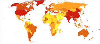 معدلات سنوات العمر معدلاً حسب الإعاقة حسب العمر (DALY) من أمراض الجهاز التنفسي حسب البلد (لكل 100000 نسمة).