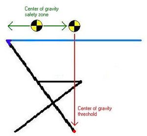 وعندما يتمركز الجسم بحيث لا يتوازن، فإنه يدور حتى يصل مركز جاذبيته إلى الاتزان المستقر (أقل وضع ممكن). وإذا توازن الجسم مع مركز جاذبية مباشرة فوق المركز، فإن أي حركة سوف تتسبب في عدم استقرار الجسم. ويقال عن توازن الجسم بهذه الطريقة أنه في وضع اتزان غير مستقر.