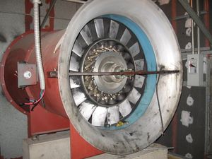 - مروحة طرد مركزي Centrifugal fan:يندفع الهواء نحو المحور ثم يتوزع عموديا أي شعاعيا على المحور.