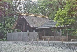 تتواجد المباني الخشبية التي تحتضن الأضرحة في أحد المكانين فقط، وتتوضع على دعائم وتعلوها أسقف مائلة تتخذ من الجذامة (الزرع الذي يبقى بعد الحصد). توحي أشكال هذه المباني، بتلك التي كانت تتخذ كأنبار للأرز في الفترات القديمة من تاريخ اليابان. يمنع تقليد هذا الطراز في الأضرحة الأخرى في اليابان. يتم مرة كل عشرين سنة هدم هذه المباني حسب مراسيم وطقوس خاصة ثم يعاد بناءها في المكان المجاور، تعود التقنيات المستخدمة في بناءها إلى القرن السابع للميلاد. تقام في المزار الصلوات الخاصة بموسم الحصاد، ويعتبر مكانا سياحيا مفضلا في اليابان.