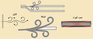 في الآلات ذات الحافة (كالفلوت) يوجه تيار من الهواء نحو حرف حاد فيثير في الجوار عموداً من الهواء داخل الأنبوب فيجعله يهتز بانتظام وينتج الصوت. في الفلوت البسيط ينشأ عمود من الهواء على هيئة شريط بين شفتي العازف ويتجه نحو الحرف من فتحة.