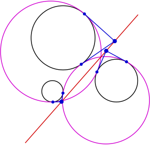 Carnot L (1803). Géométrie de position (in الفرنسية). Paris: Unknown publisher. pp. 390, §334. - ^ Cauchy AL (July 1806). "Du cercle tangent à trois cercles donnés". Correspondance sur l'École Polytechnique (in الفرنسية). 1 (6): 193–195.