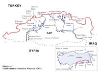 بدأت تركيا مشروع جنوب شرق الأناضول في عام 1989 في عهد الرئيس التركي طرغد اوزال لبناء 22 سد على منابع نهرا دجلة والفرات. وقد أبدت دولتي المصب، العراق وسوريا تخوفها من المشروع، فطمأنتهما تركيا بأن المشروع لن يؤثر على حصصهما من المياه، مشيرة إلى أن هذه السدود هي لتوليد الكهرباء. مع تقدم المشروع، تغيرت الخطط. وأصبح من أهداف المشروع استصلاح الأراضي القاحلة وزراعتها بالقطن. وبدأت كل من العراق وسوريا في الشكوى من قلة ما يصلهما من ماء. ومع حلول يوليو 2008، بدأ العراق يشهد ما لم يره منذ آلاف السنين. إذ ظهر قاع نهر الفرات صيفاً، بأثر من قلة المياه. لم يصحب التصريحات الدافئة من تركيا تجاه العرب، تمرير كميات كافية من الماء في الرافدين الخالدين. وبدأ الحديث عن تصدير تركيا للماء إلى دول أخرى، في حين يعاني العراق وسوريا عطشاً هائلاً. ويكتمل المشهد بظهور مشايخ يبشرون العراقيين بحديث للرسول