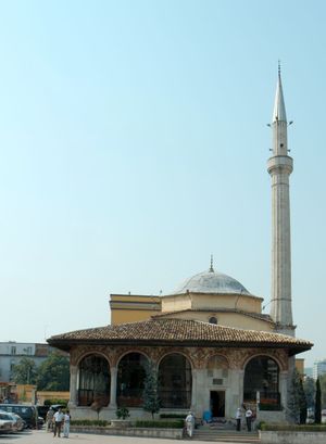 يقع مسجد أدهم بيه في مدينة تيرانا عاصمة ألبانيا