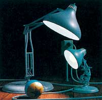 التحريك بالحاسوب يستدعي استخدام أشكال مرسومة بالحاسوب. وتبين الصورة (أعلاه) مشهدًا من فيلم لكو الابن لمصباحي مكتب. واستخدم الحاسوب في تشكيل عناصر ذات مظهر واقعي تظهر في الفيلم.