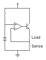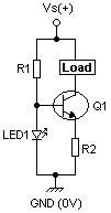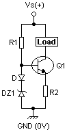 Voltage across R2 (VR2) is given by VZ - VBE, where VBE is the base-emitter drop of Q1.
