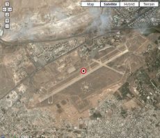 موقع مطار المزة العسكري في دمشق، باللون البني أسفل اليسار. | |||||||||||