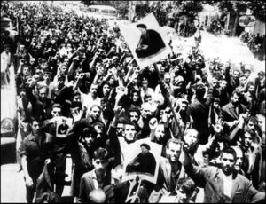 مظاهرات 15 خرداد 1342 هـ.ش. (الموافق 5 يونيو 1963) بعد اعتقال حجة الإسلام روح الله خميني، اندلاع الاضطرابات في مدن طهران وقم، اندلعت مظاهرات يعتبرها البعض بداية الثورة الإسلامية. وأتى اعتقال خميني في أعقاب إلقائه لخطاب غاضب يهاجم فيه الشاه محمد رضا پهلوي، وإسرائيل والولايات المتحدة.[1] وقد أُخذ نظام الشاه على حين غرة وفوجئ بمظاهرات شعبية ضخمة من الدعم، وعلى الرغم من نجاح الشرطة والجيش في قمعها في غضون أيام، إلا أن تلك الأحداث ولّدت شعورًا بأهمية وقوة المعارضة الدينية (الشيعية) لنظام الشاه واعتبار خميني زعيمًا سياسيًا ودينيًا بارزًا.[2] وبعد مضي خمسة عشر عامًا، كان على خميني قيادة الثورة الإيرانية التي أطاحت بالشاه والدولة الپهلوية وإقامة جمهورية إيران الإسلامية.