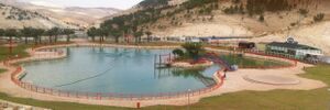 - أطلال دير قديسة أوثيميوس، بُني في القرن الخامس ودمره السلطان المملوكي بيبرس.[53] يُعرف بالعربية باسم الخان الأحمر، منذ إعادة استخدام المباني في القرن الثالث عشر كخان للحجاج المسلمين على الطريق بين القدس ومكة عبر قرية النبي موسى.[54]