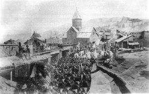 The results of the Treaty of Georgievsk proved disappointing for the Georgians.[2] King Erekle's adherence to it prompted Persia's new ruler, Agha Mohammad Khan, who had sent several ultimatums, to invade, as he sought to re-establish Persia's traditional suzerainty over the region.[5] Russia did nothing to help the Georgians during the disastrous Battle of Krtsanisi in 1795, which left Tbilisi sacked and Georgia ravaged (including the west Georgian kingdom of Imereti, ruled by Erekle II's grandson, King Solomon II). Belatedly, Catherine declared war on Persia and sent an army to Transcaucasia. But her death shortly thereafter (November 1796) put an end to Russia's Persian Expedition of 1796, as her successor, Paul, turned to other strategic objectives. Persia's Shahanshah next contemplated the removal of the Christian population from eastern Georgia and eastern Armenia, launching the campaign from Karabagh. His goal was frustrated not by Russian resistance, but by a Persian assassin in 1797.[بحاجة لمصدر]