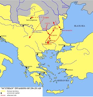 | جزء من الحروب الرومانية القوطية في القرن الثالث م. جزء من الحروب الرومانية الجرمانية | |||||||