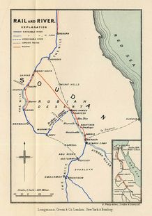 خريطة من حرب النهر لونستون تشرشل تصصف مسيرة الرتل الطائر تحت قيادة الميجور-جنرال هنتر من مروي إلى أبو حامد. | |||||||