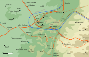 - ^ دير أيوب (371 نسمة)، صيدون (244 نسمة)، دير محيسن (232 نسمة)، ساريس (650 نسمة)، بيت فار (348 نسمة)، أبو شوشة (1000 نسمة)، النعاني (1705 نسمة)، بيت أبو القباب (2297 نسمة)، بيت محسير (2784 نسمة)، بيت جيز (115 نسمة)، بيت سوسين (244 نسمة)، اللطرون (220 نسمة)، خربة إسم الله (23 نسمة)، دير رفات (499 نسمة)، صرعة (394 نسمة)، عسلين (302 نسمة)، إشوع (709 نسمة)، كسلا (325 نسمة)، ودير عمرو (719 نسمة). انظر Morris, Benny (2004). The Birth of the Palestinian Refugee Problem Revisited. Cambridge University Press. pp. xvii–xviii.