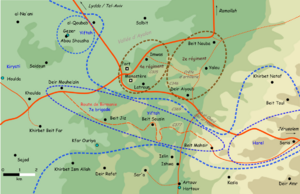 - كان اللطرون نقطة محورية في انتشار الفيلق. حشد گلوب پاشا ثلث قواته هناك. كانت هزيمته ستؤدي إلى سقوط القدس وربما سقوط إمارة عبر الأردن ككل.[64]