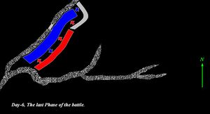 وبدأت المرحلة النهائية من المعركة عندما اندحر القسم الأكبر من القوات البيزنطية بإتجاه الجرف تحت تأثير القتاك من جهة الأمام، بينما كانوا يتراجعون بإتجاه المركز نتيجة الهجوم من الجانب، حيث نجم عن ذلك إختلال التوازن في الجيش.