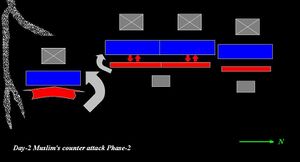 وتدخلت سرايا الخيالة المسلمين لصد الهجوم بالإلتفاف عن يسار الروم، أي من الطرف الشمالي لكل لواء، وبعدها تدخل خالد مجدداً بمجموعته سريعة التنقل ليهاجم جند ماهان المتقدمين ضد لواء شرحبيل. وتم صد الهجوم وتراجع الروم إلى أماكنهم الأصلية كما كانت قبل بداية المعركة. وجاء المساء لينتهي هذا اليوم.