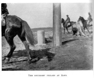 At 01:00 the 1st Light Horse and the New Zealand Mounted Rifles Brigades led Desert Column. Half a mile (0.80 km) من الشيخ زويد، they encountered a hostile Bedouin camel patrol which was captured. At 06:15 the Auckland Mounted Rifle Regiment (New Zealand Mounted Rifles Brigade) was first to reach the boundary pillars on the Egyptian and Ottoman frontier, moving from the African continent onto Asia. These two brigades rode to a position from which to attack the Rafa defences, from the south, east and north. They were followed at 02:30 by the remainder of the Anzac Mounted Division, part of the 5th Mounted Brigade, the Imperial Camel Brigade, and six Ford motor cars of the 7th Light Car Patrol. Two troops of the Worcester Yeomanry, (5th Mounted Brigade) remained at Sheikh Zowaiid to protect the ammunition column, while a squadron followed the caravan road towards Rafa.[21][22][19]