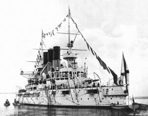 Russian battleship Retvizan, whose captain received severe wounds during the ship's solo charge against the Japanese fleet
