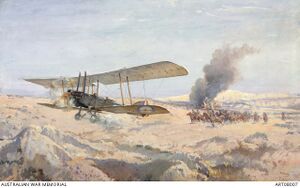 A series of bombing raids on the railway from Junction Station to Tel el Sheria aimed to disrupt the Ottoman lines of communication during the build-up to the battle. No. 1 Squadron Australian Flying Corps and No. 14 Squadron bombed Beersheba in mid February, destroying 3 German planes, and on 25 February assisted a French battleship's shelling of Jaffa, by directing the ship's fire. On the same day, the German aerodrome at Ramleh was bombed. Then on 5 March six aircraft of the Royal Flying Corps (RFC) conducted bombing attacks intended to interfere with the Ottoman withdrawal from the Khan Yunis line. They bombed Beersheba and the Palestine railway at Tel esh Sheria 12 ميل (19 km) to the northwest. Although the damage was not great, the railway at Tel esh Sheria continued to be bombed in moonlight on 7 March, by relays of aircraft. Junction Station and supply depot, an important junction of southern Palestine railways with the Jaffa–Jerusalem railway many miles to the north, was also bombed on 9, 13, and 19 March.[23][26]